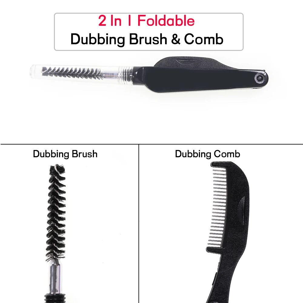 2 In 1 Fly Tying Tool Foldable Stainless Steel Teeth Comb& Nylon Dub Brush Tease Out Feather Fiber Dubbed Legs Wings Bodies