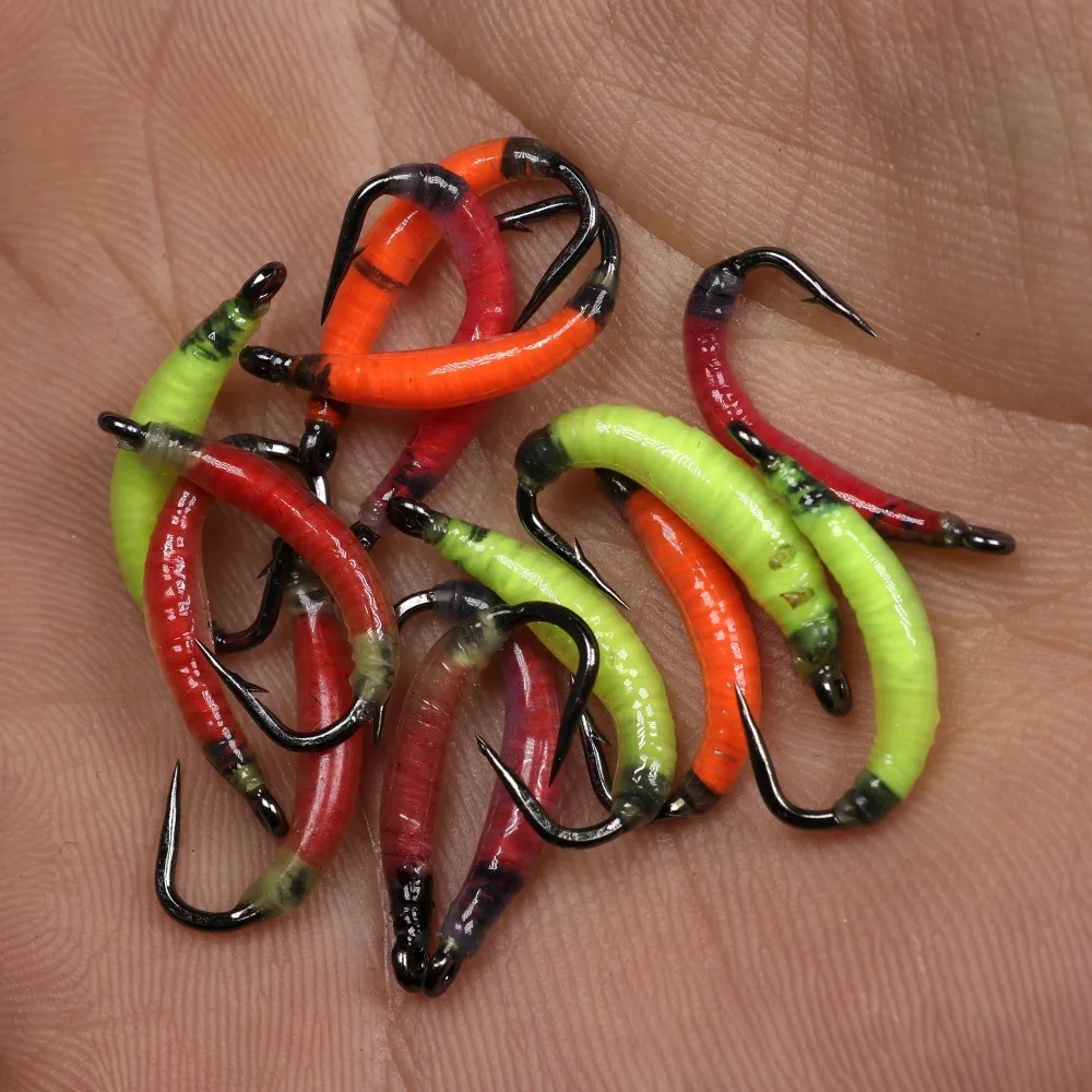 [6 PCS] #8 garden worm fly Earth worm fly for fresh water fish Trout Perch Bluegill Whitefish Fly Fishing Nymph Bugs