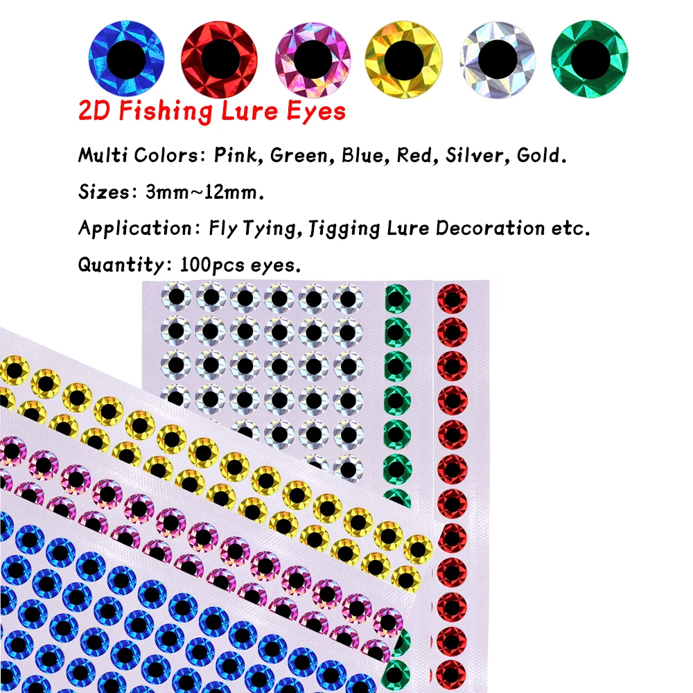 WIFREO 100pcs Flat Fishing Lure Eyes 2D Artificial Fish Eyes Sticker for Slow Jigging Metal Jig Lure 3mm-12mm Fly Tying Material