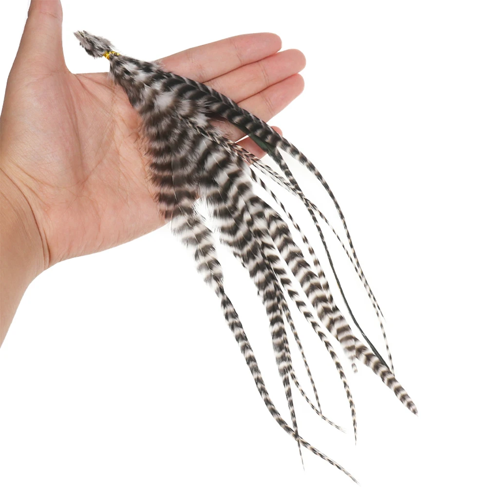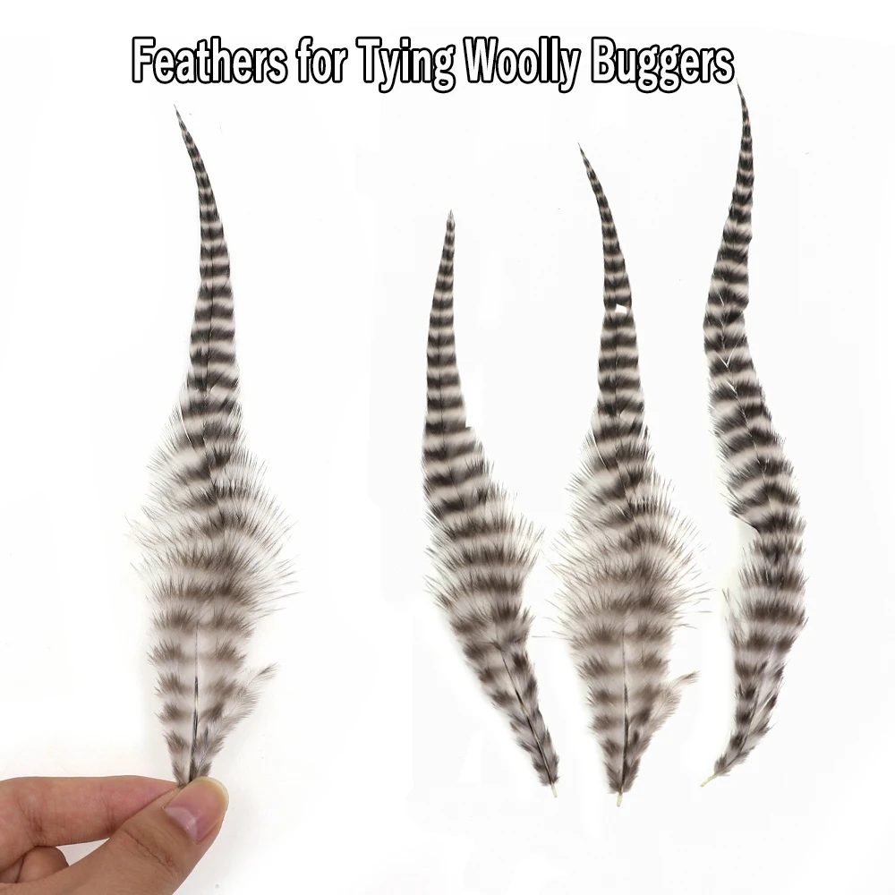 Wifreo 10pcs Natural Black&White Fly Tying Saddle Hackle Feathers Grizzly Rooster Hair Feather for Tying Woolly Buggers Streamer
