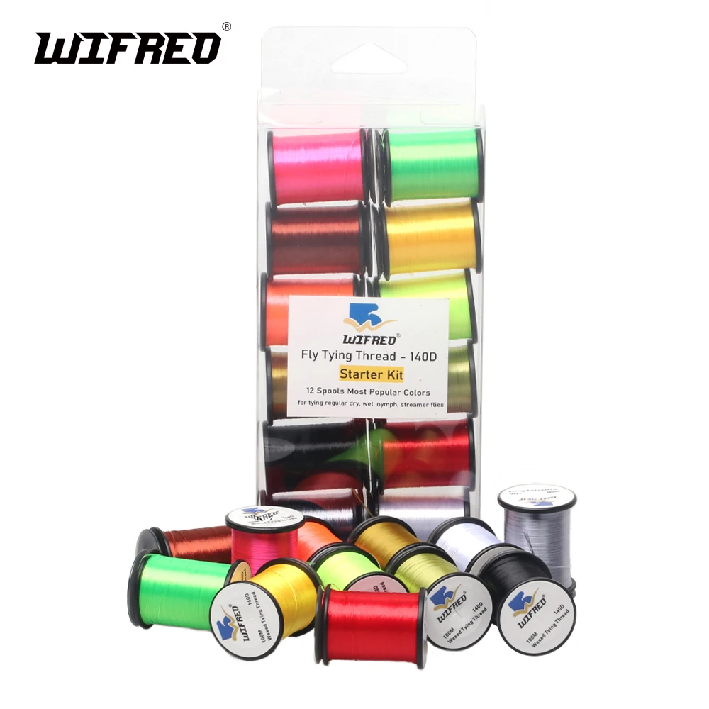 Wifreo 12 Colors/Set 140D Waxed & Twisted Fly Tying Thread Fly Fishing Tying Material for Dry Wet Flies Nymphs Streamers Lure