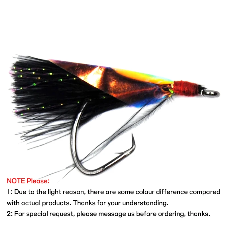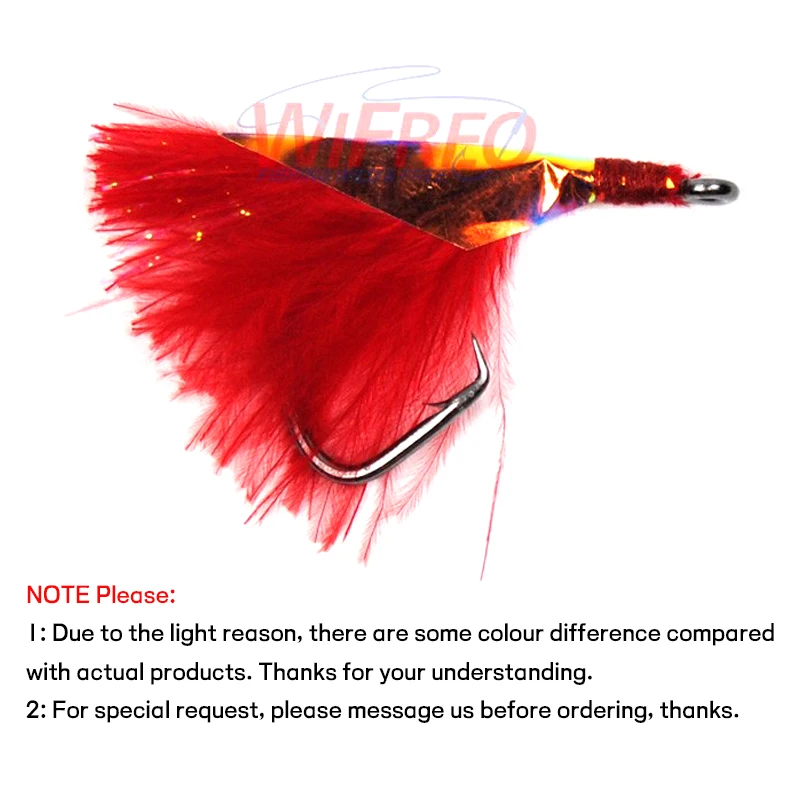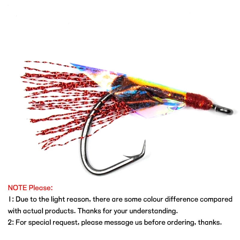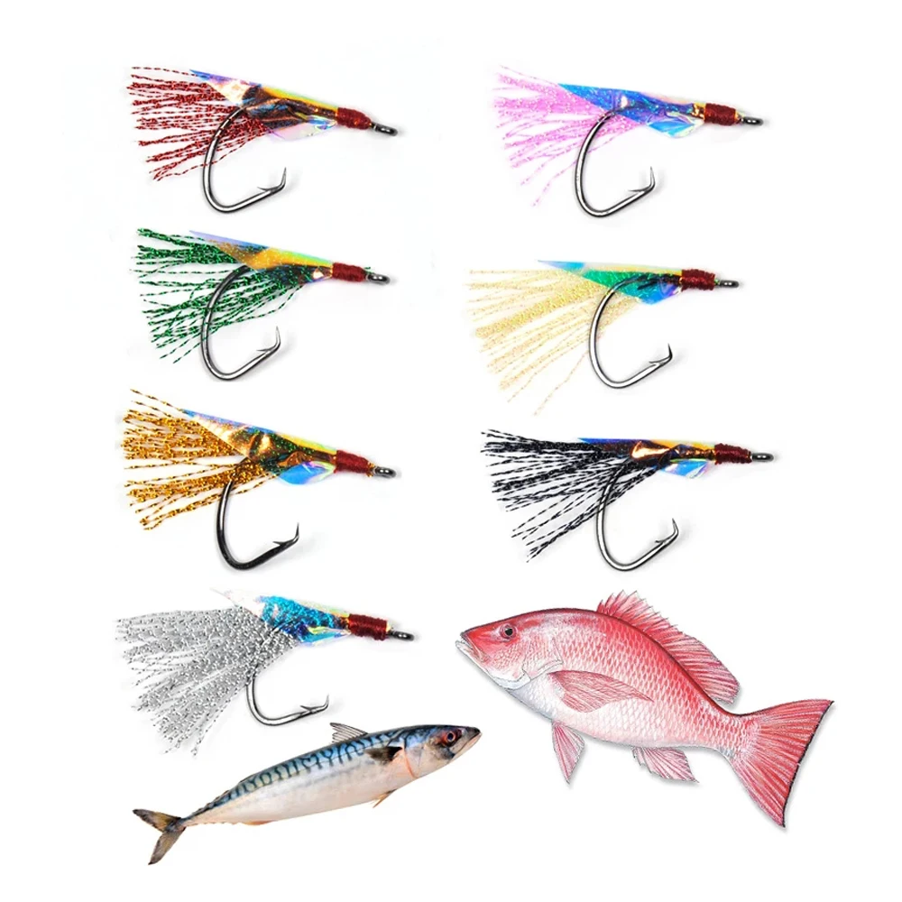 WIFREO 12pcs Circle Hook Fishing Fly for Sabiki Rig Flash Flies Saltwater Black Green Gold Blue Silver 1/0 2/0 4/0 6/0 8/0