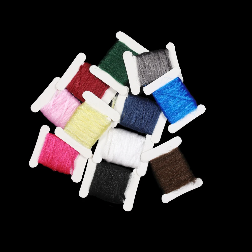 Specification: Polypropylene Floating fibers, popular for spinner wings, parachutes, grasshopper bodies, and poly duns. 2M per card, each color in individual card, we get 11 colors for you to choose from.