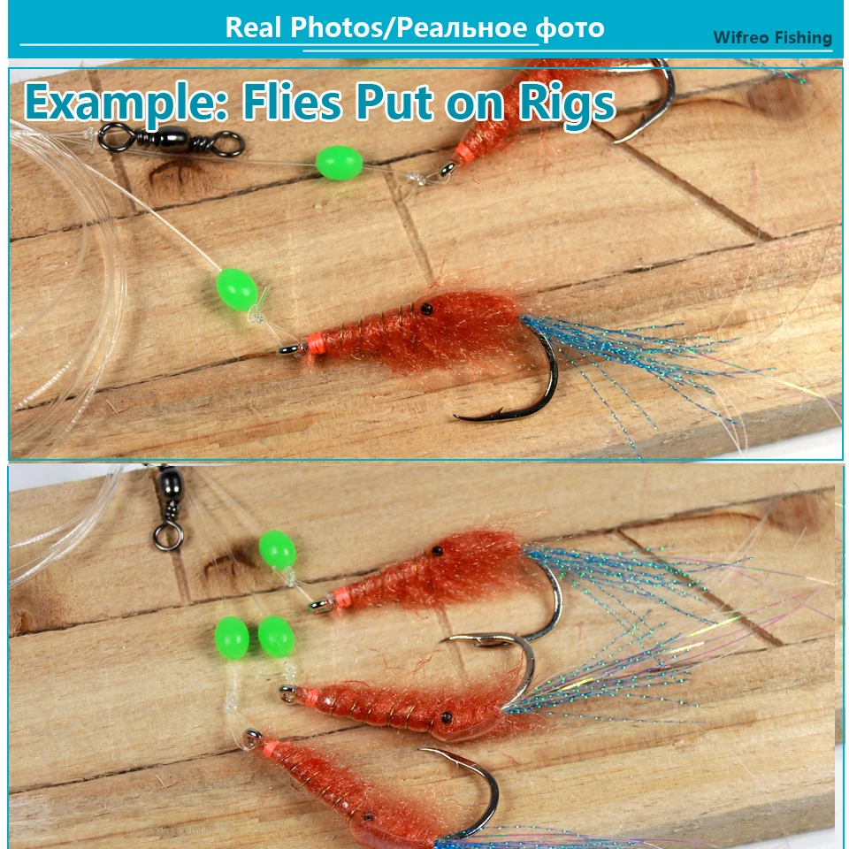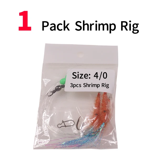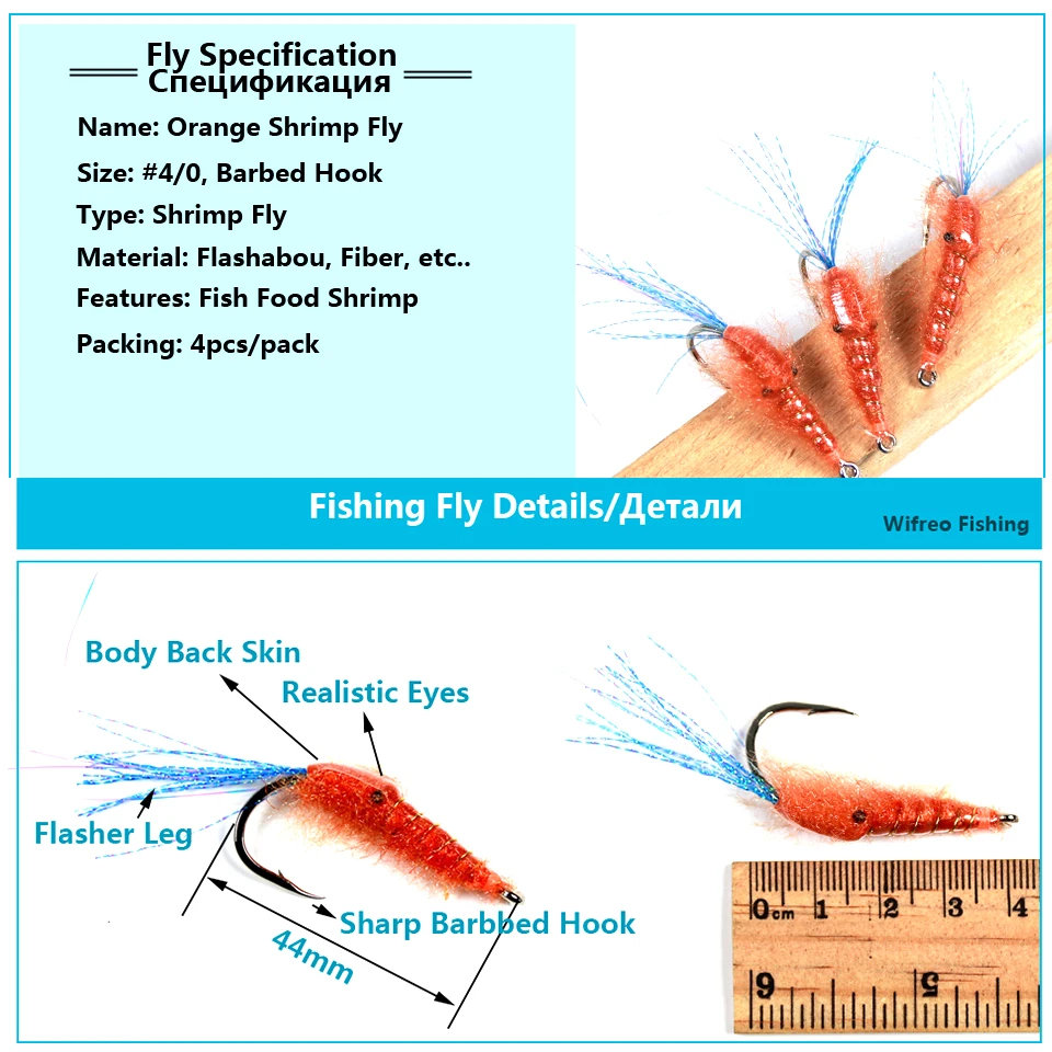 Wifreo 4PCS 4/0 Orange Shrimp Saltwater Bait Fish Flies with Pearl Flashabou Tail Artificial Trout Fly Fishing Hooks Lose Shrimp