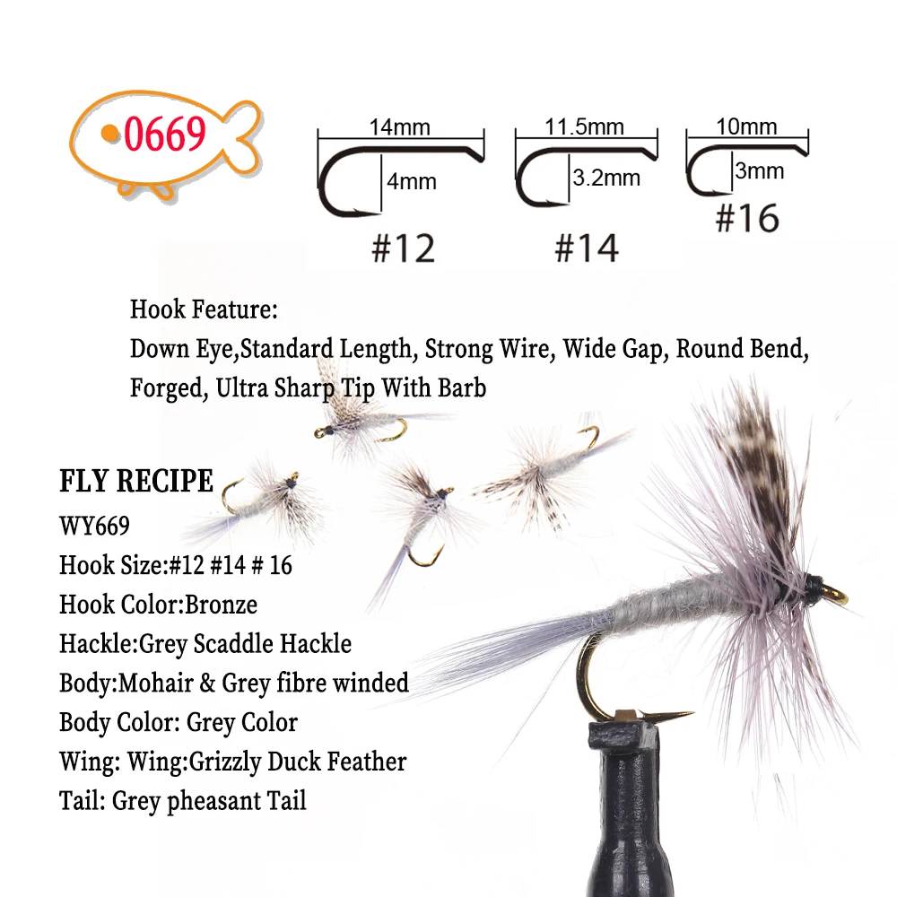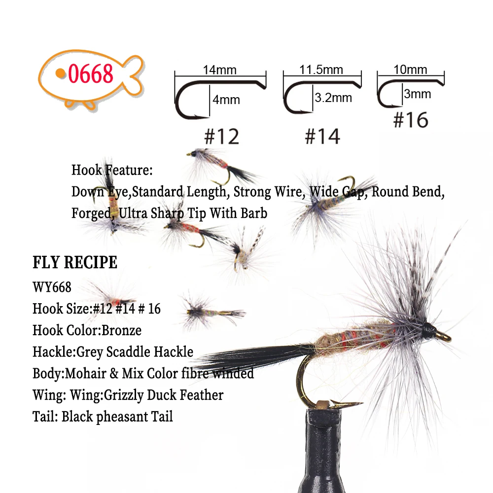 Wifreo 6/10pcs Adams Fly #14 Parachute Dry Fly Artificial Trout Fishing Lure Bait Adult Mayfly flying Caddis or Midge