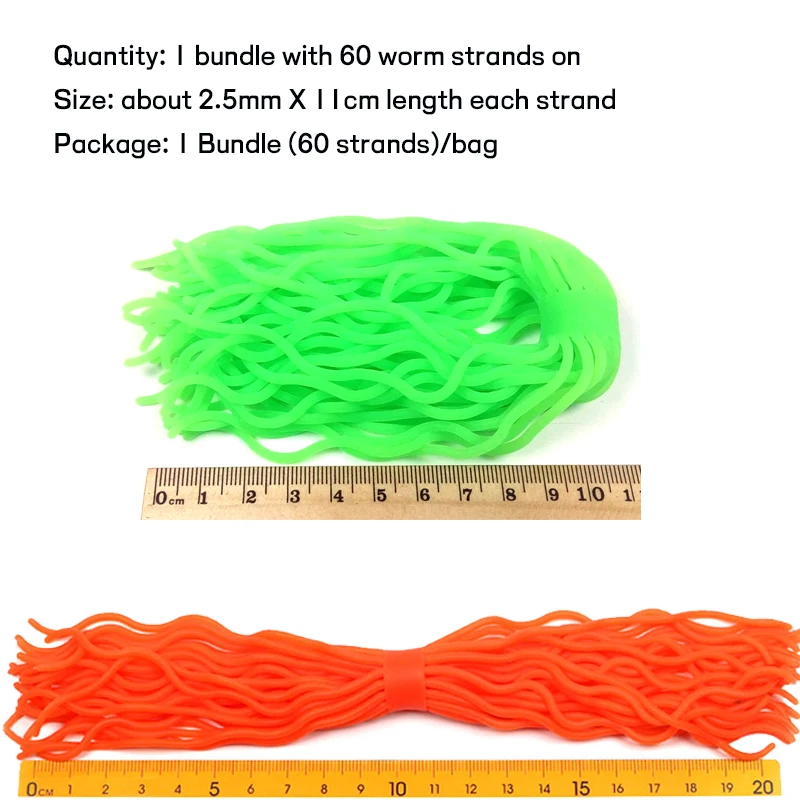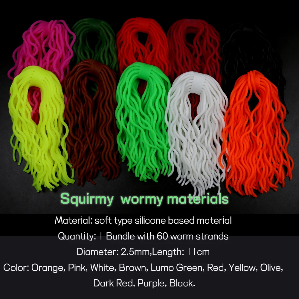 WIFREO 60 strands/PC Fshing Lures Soft Worm Body Squirmy Wormy Fly Tying Material San Juan Worm Earthworm Baits for Trout