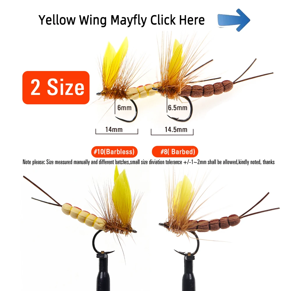 WIFREO 6PCS #10#12 #14 CDC Feather Wing Mayfly Deer Hair Body Dry Fly Rocky River Trout Fishing Flies Bait Lure