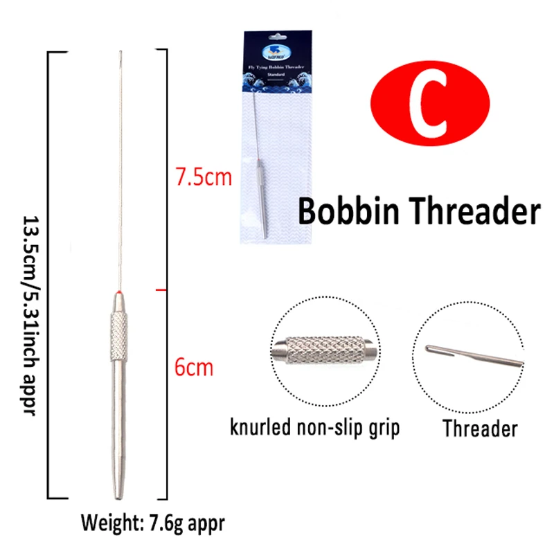 - Features a hexagonal brass handle, so it won't roll off the bench. The fine wire loop is formed in a tight shape for easy insertion into the bobbin tube. This tool is also handy for pulling tubber legs through hair or foam bodies. Bobbin Threaders are a time saver anytime you need to change the color of your thread.